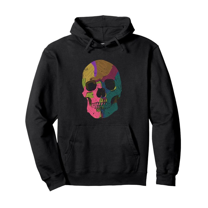 - Vivid colorful skull design blending gothic horror with modern streetwear edge for bold fashion statements.