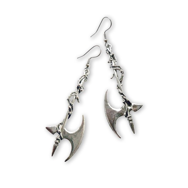 Gothic Vine Wrapped Executioner's Axe Medieval Renaissance Dangle Earrings