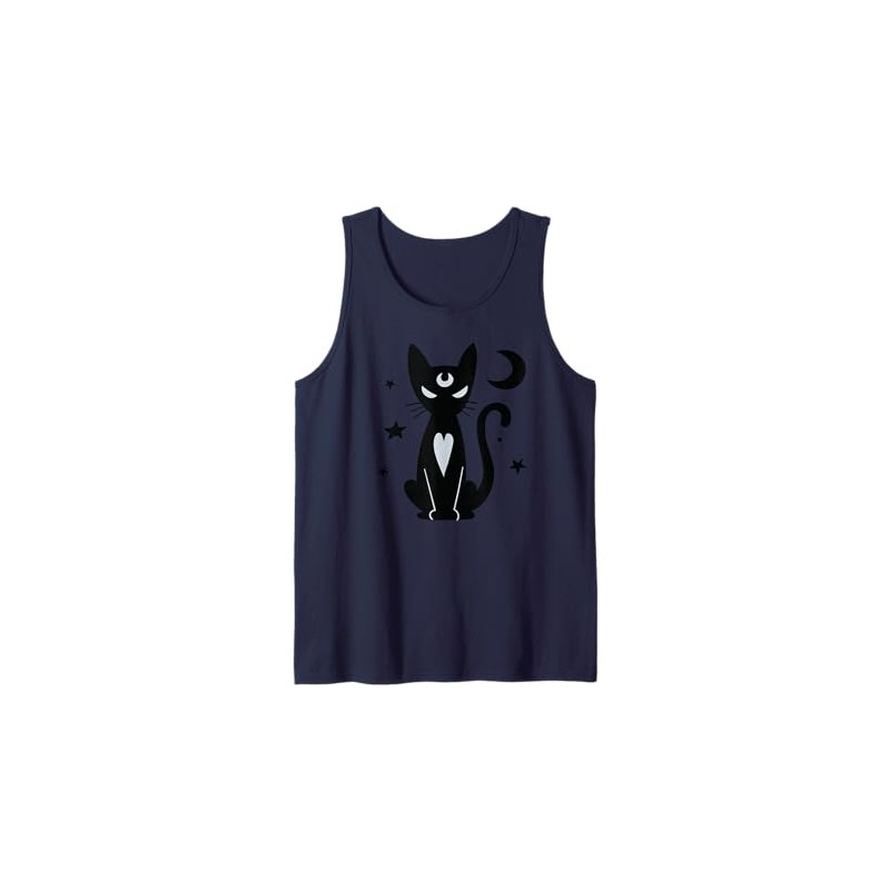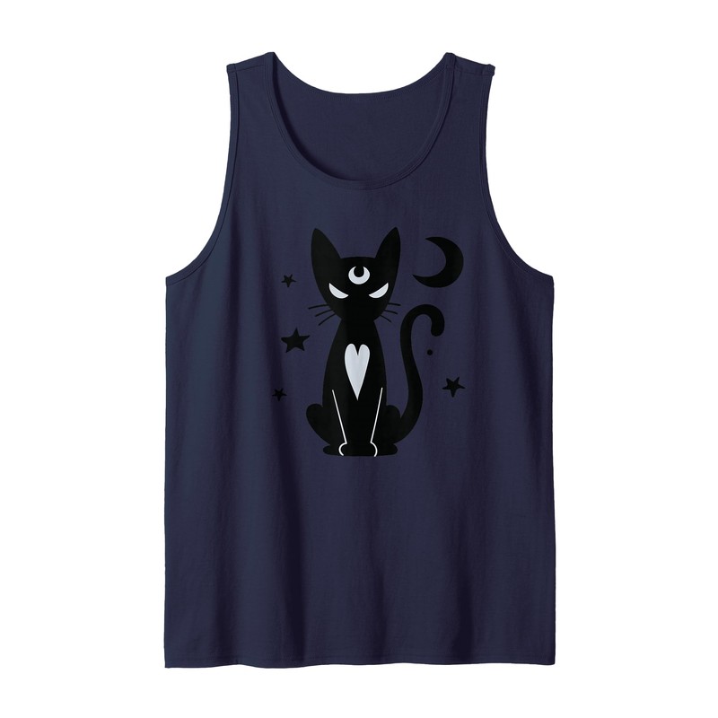 Gothic Witchy Black Cat with Moon Mystical Stars Night Art Tank Top