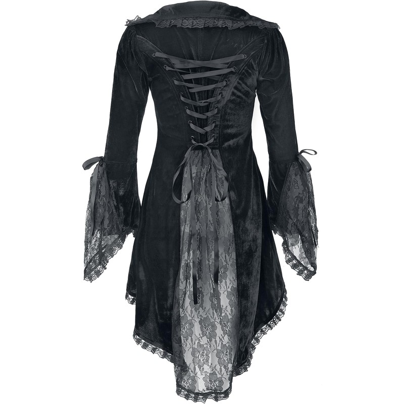 Gothicana by EMP Ladies Black Velvet Look Cardigan with Lace Detail, black