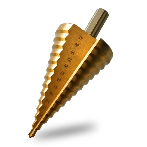 - 14-step metal drill: Unique stair structure, a drill for opening a variety of holes without changing the drill. 14 sizes: 4 - 42 mm (4, 6, 9, 12, 15, 18, 21, 24, 27, 30, 33, 36, 39, 42 mm)