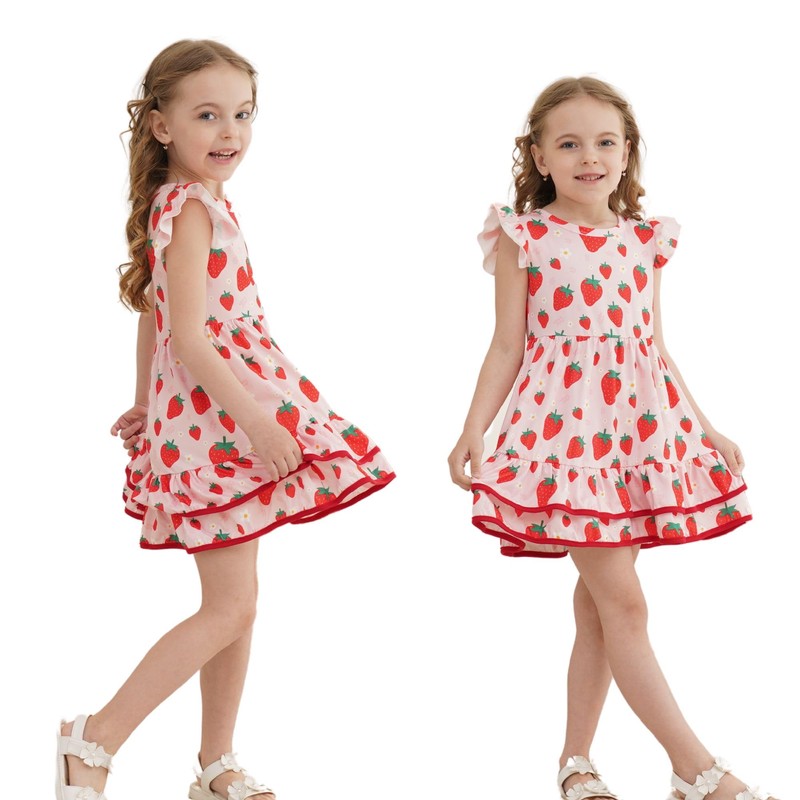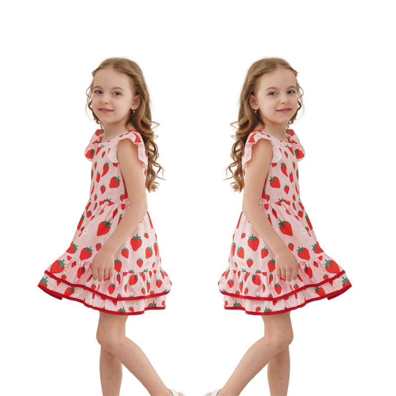 Little Girls Summer Dress Toddler Girls Ice cream Dress Strawberry Dress Butterfly Dress Kids Easter Smocked Dress Babys Valentine's Day Dress Ruffle Sleeve Shirred Tiered Casual Sundress for 2-7 Years