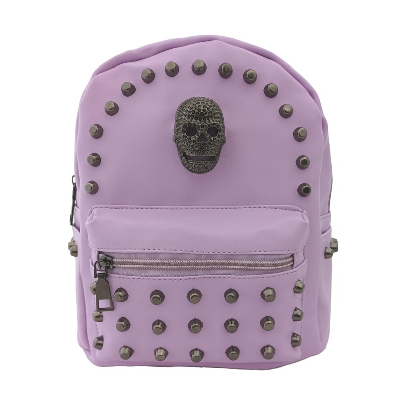 GOTHX Mini Gothic Metal Cross Stud Lilac Pastel Goth Backpack Rucksack | Small School Rock Bag