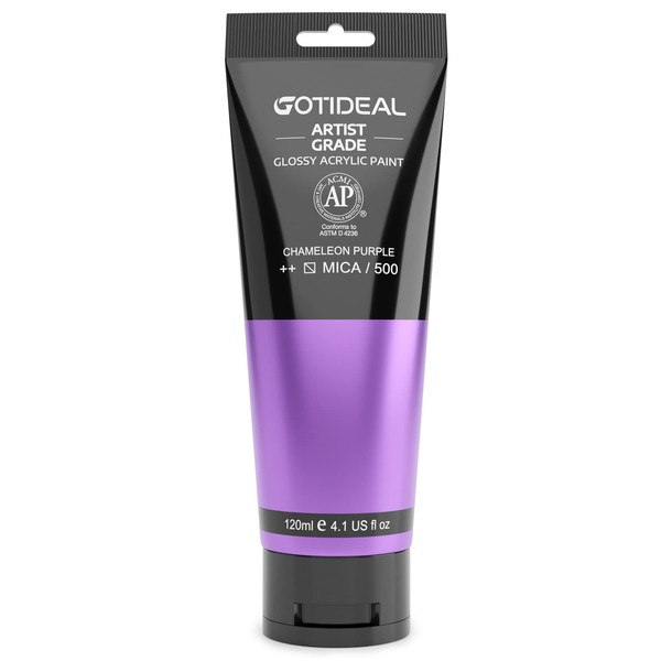 GOTIDEAL Iridescent Acrylic Paint Chameleon Purple Tubes(120ml, 4.1 oz) Non Toxic Non Fading,Rich Pigments for Painters, Adults & Kids, Ideal for Canvas Wood Clay Fabric Ceramic Craft Supplies