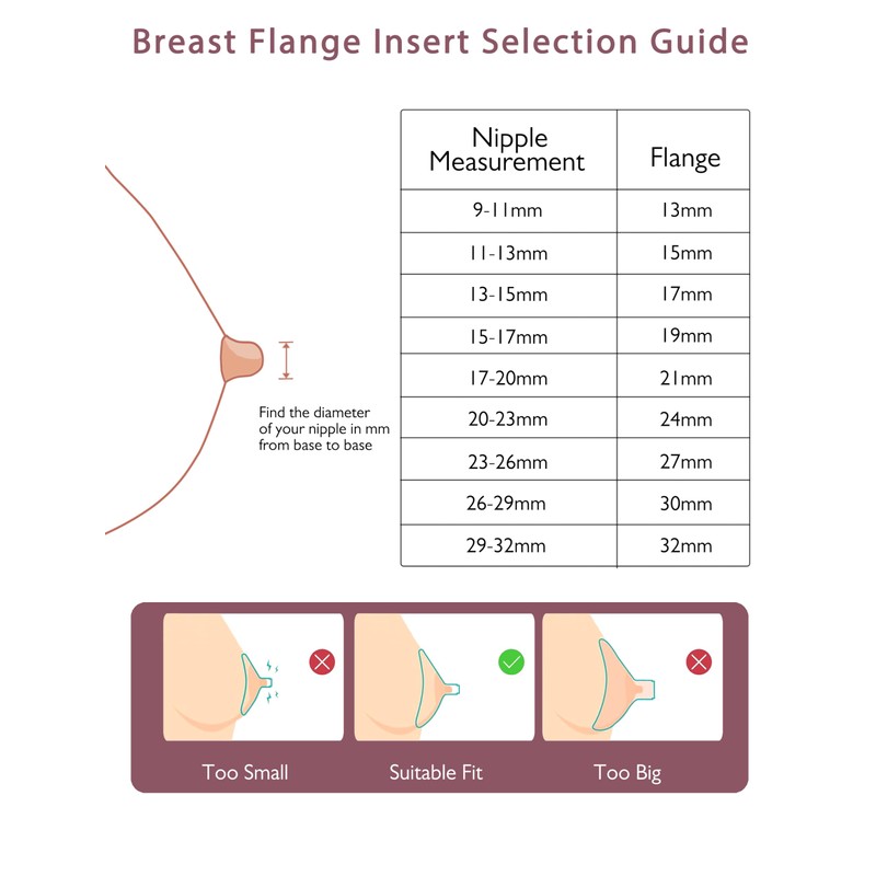 • 8pcs 15 mm 17 mm 19 mm 21 mm Flange inserts ;Since your flange size can change throughout your pumping journey, they offer convenience, flexibility, and peace of mind