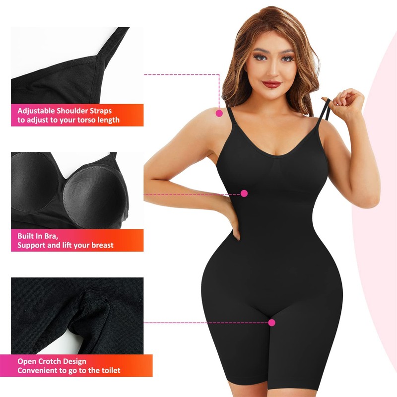 - [ADJUSTABLE STRAPS & OPEN CROTCH DESIGN]The waist trainer bodysuits has 2 adjustable straps,which help to adjust to fit your body and lift the boobs perfectly,no matter you are long torso or short torso. This slimming bodysuit for women comes with the opening in the crotch so you don't need to take the whole thing off to use the restroom,offer your an excellent wearing experience.