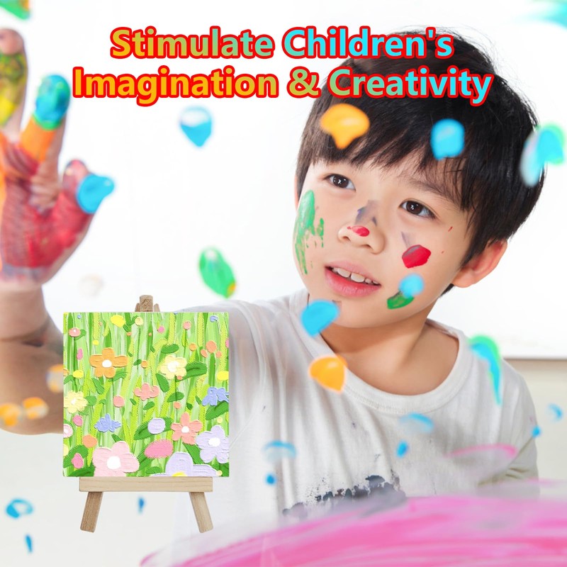 • 🎨[23pcs easel canvas set] The mini canvas easel kit including 6pcs mini easels, 6pcs art canvases, 6pcs paint brushes and 6pcs paint. A complete set can meet your painting needs.