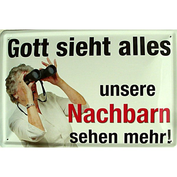 Gott sieht alles die Nachbarn mehr Blechschild Gewölbt Neu 20x30cm S3451