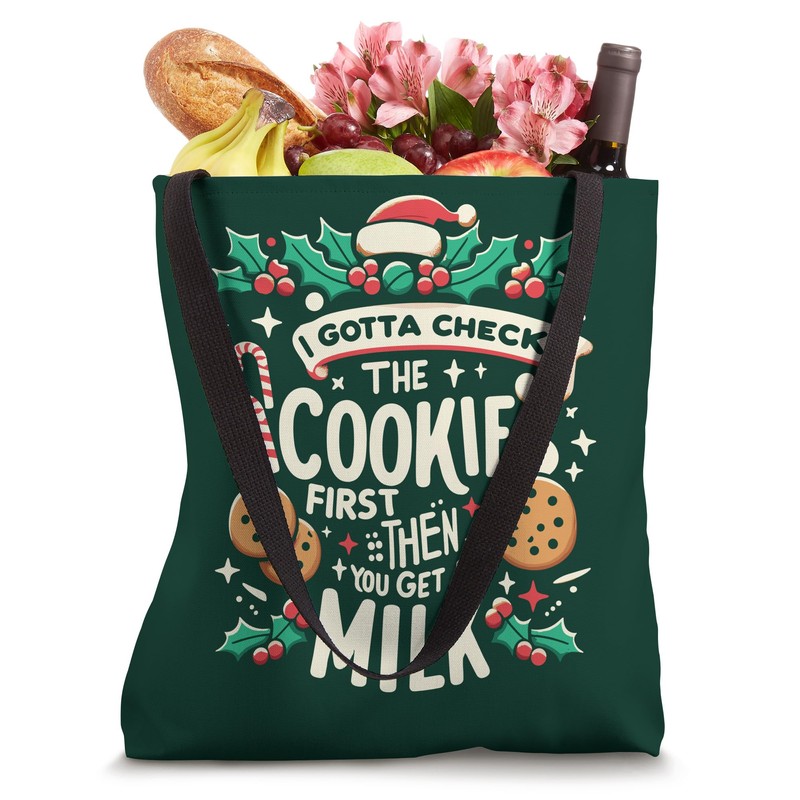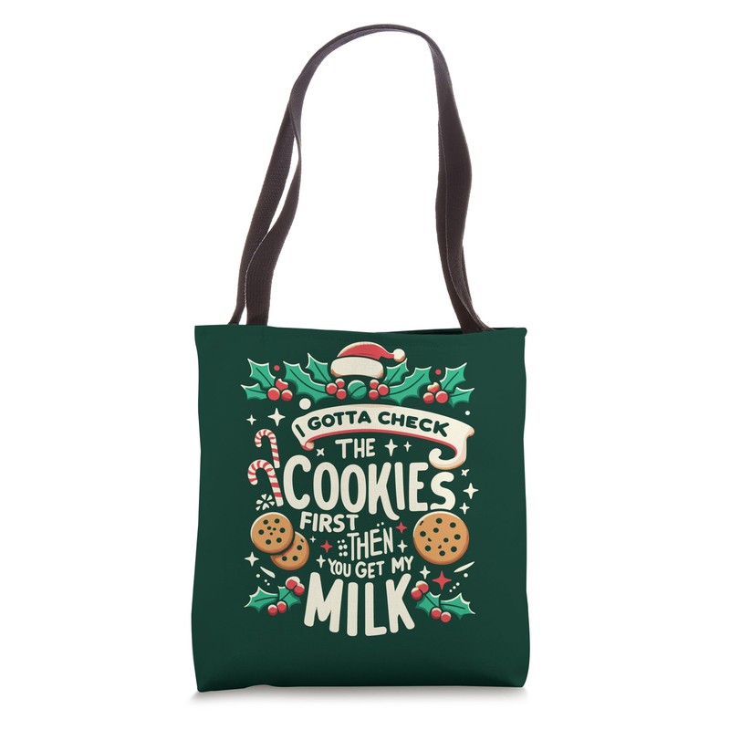 - This cheeky Christmas design for men adds a flirty, adult twist to holiday humor. Featuring the phrase "I GOTTA CHECK THE COOKIES FIRST, THEN YOU GET MY MILK", it’s a playful nod to festive traditions with a suggestive spin, perfect for spreading laughs