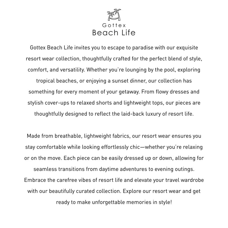 - Crêpe Fabric - Offers a breezy, airy feel with natural breathability that keeps you comfortably cool in sun-drenched weather.
