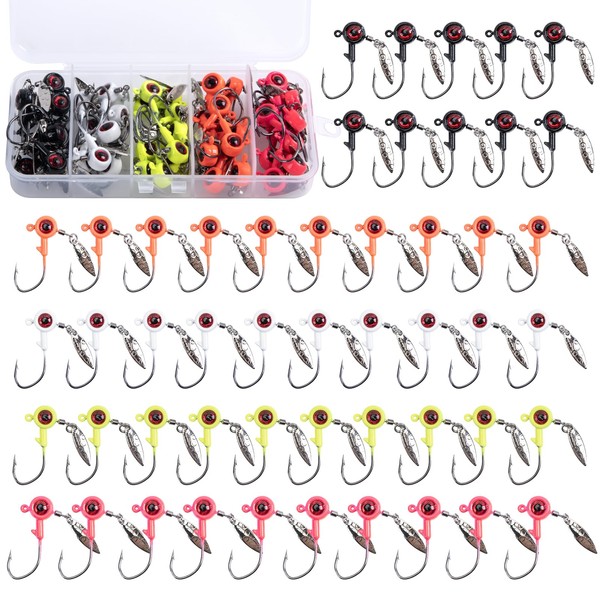 Goture 50pcs Jig Head Spinner Jig Head with Blade 5 Colors 5g Ajing Fishing Lures Jig Headset