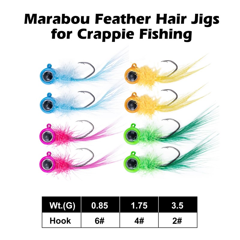 | Color: | B: 120pcs Crappie Lure Kit + 8pcs Feather Jigs |