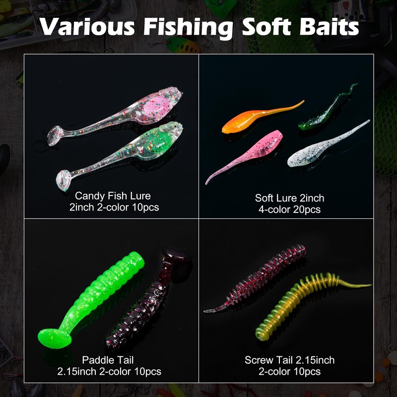- Diverse Lure Selection for All Conditions: Offering a wide variety of lures, this kit is ideal for fishing in different environments, from shallow ponds to deep-sea waters. It includes soft baits, crappie jigs, tube jigs, and feather hair jigs, ensuring you’re equipped to attract fish in all fishing conditions
