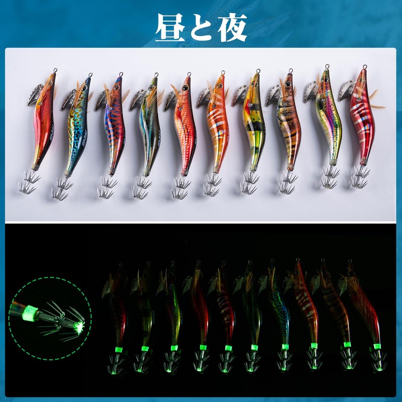 - Built-in Rattle / Fluorescent Coating: The lure has a built-in steel ball for powerful attraction by sound and vibration. Not only does it vibrantly move, but it also attracts your goals with sound. The effective sound is a potent weapon that attracts curious squid. Using high corrosion resistant carbon steel hooks, the caught squid is difficult to escape. High reflective paint on the abdomen and tail to attract squid more intense and effectively. Also great for night or day use! Can be used in all water areas