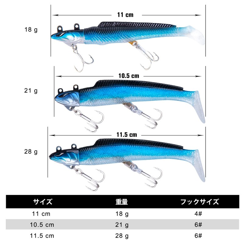 - Net Contents: 5 piece set (5 heads and 5 worms) Size: 4.1 inches (10.5 cm) Weight: 0.8 oz (21 g). *********Field:Saltwater (saltwater), river mouth, embankments, surf The weight is the weight of the jig head alone and the worm