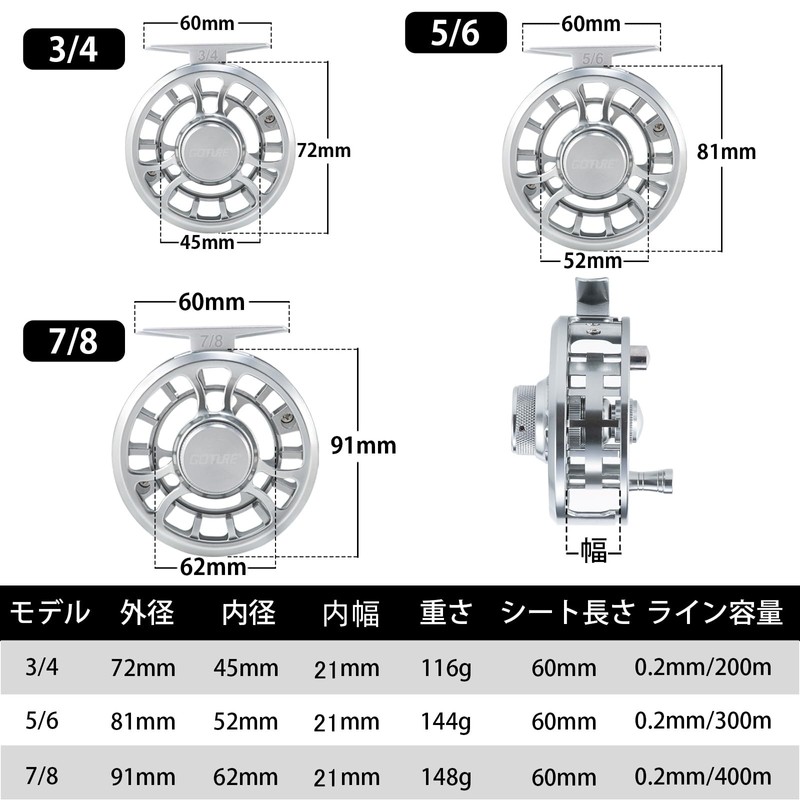 Goture Fly Reel, Fly Reel + Spool Set, Aluminum Anodizing, Precision Machining, Left/Right Interchangeable, Lightweight, 5/6 Reel, Fly Reel, Wakasagi Fishing, Loofah Fishing, Fishing Tackle
