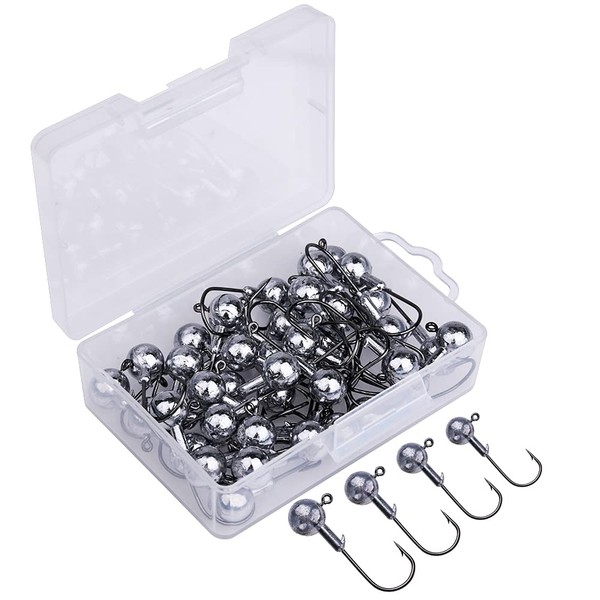 Goture Pack of 50 Fishing Hooks Set 5 g, Jig Hooks with Round Jig Head for Rubber Fish for Predator Fishing, Lead Head Hooks, Jig Hooks, Fishing Hook Set, Jig Heads, Sharp Jig Hooks Set for Rubber