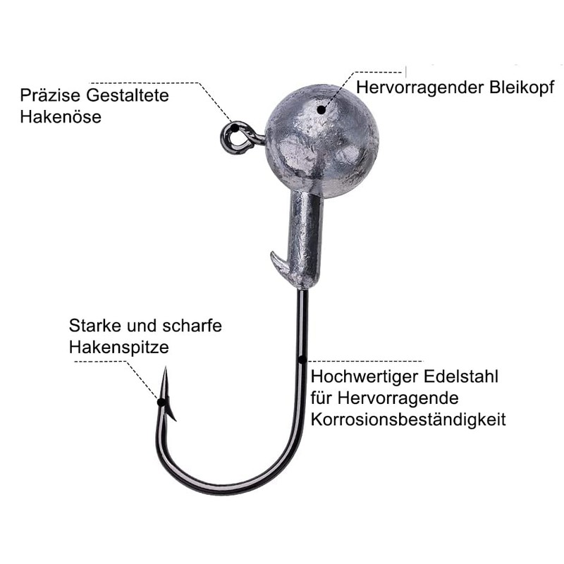 - High-quality lead head: jig hook set allows these fishing jig hooks to sink quickly into the catching zone. You can create a lifelike swimming action to entice more fish to bite. The smooth eyelet prevents the fishing line from tearing off.