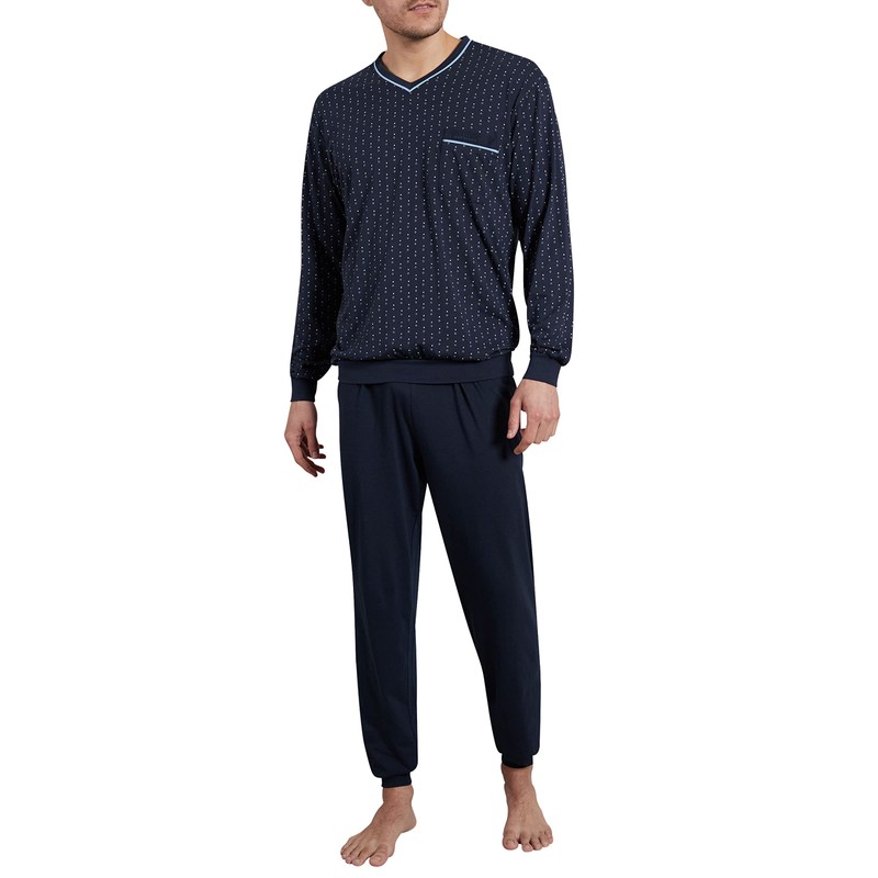 Götzburg Men's Cuffed Pyjamas, Long, Blue-dark plain, 56
