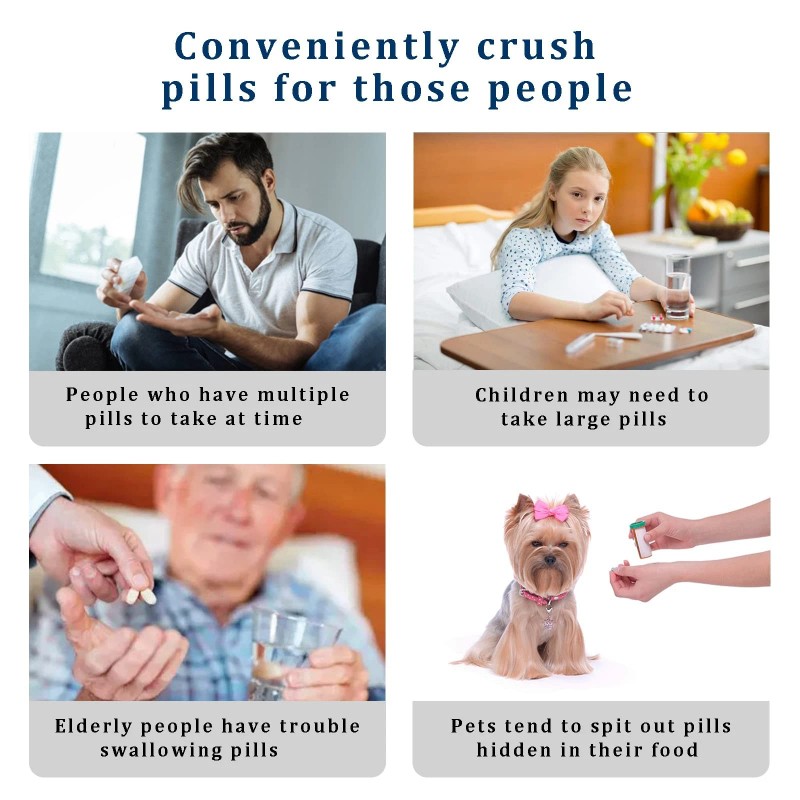 【Safty and Easy to Use】Simply put the tablets into the drug pulverizer cup, then close the cover and gently press the switch down to grind them into an easy to manage dose. The crusher starts when you press and stops when you put your hand down. Press for different times to control the thickness of the pill powder. In addition, only when the cover is aligned with the switch card can it be started, which is safer.