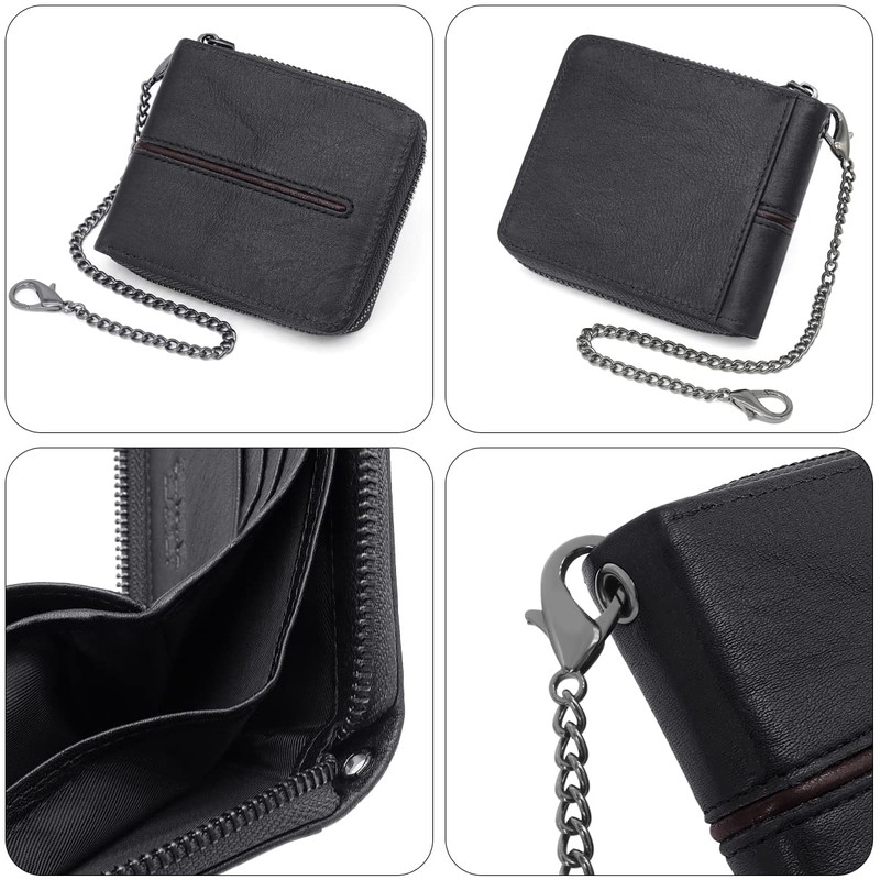 - Double safety protection: men's wallets are closed with a zip, so you do not lose anything and they do not always open like normal wallets, it is safer. It is equipped with a removable long chain, it can be hung on the trousers, no one can steal your wallet and you don't have to worry about losing it; keep all important things safely by your side.