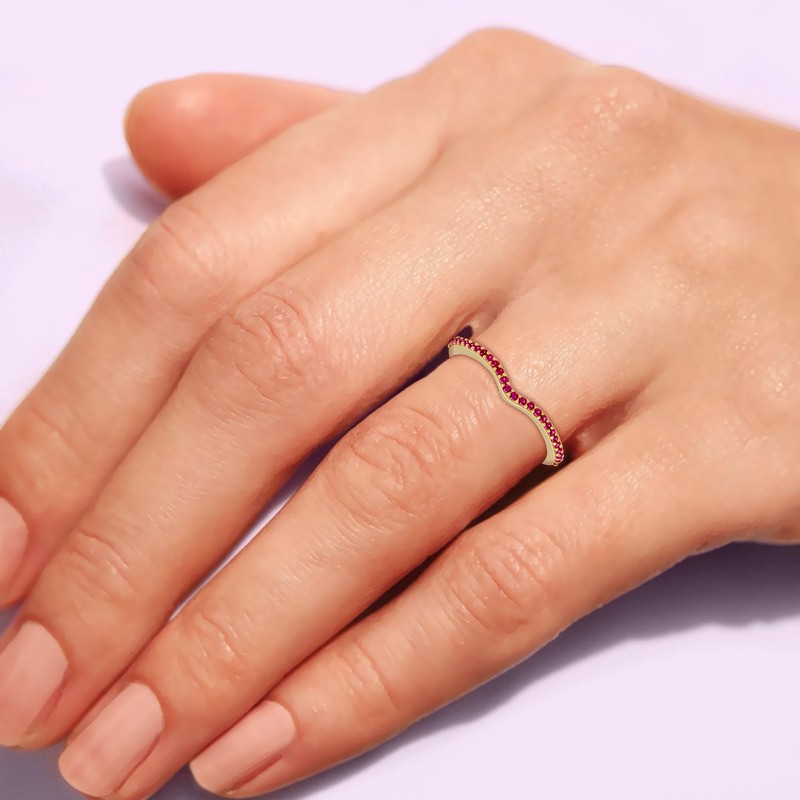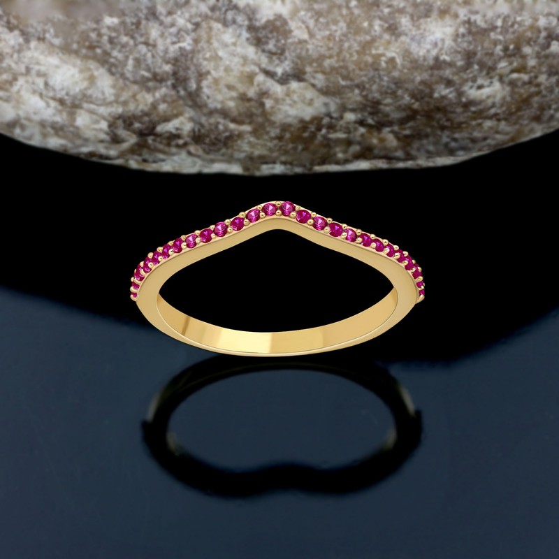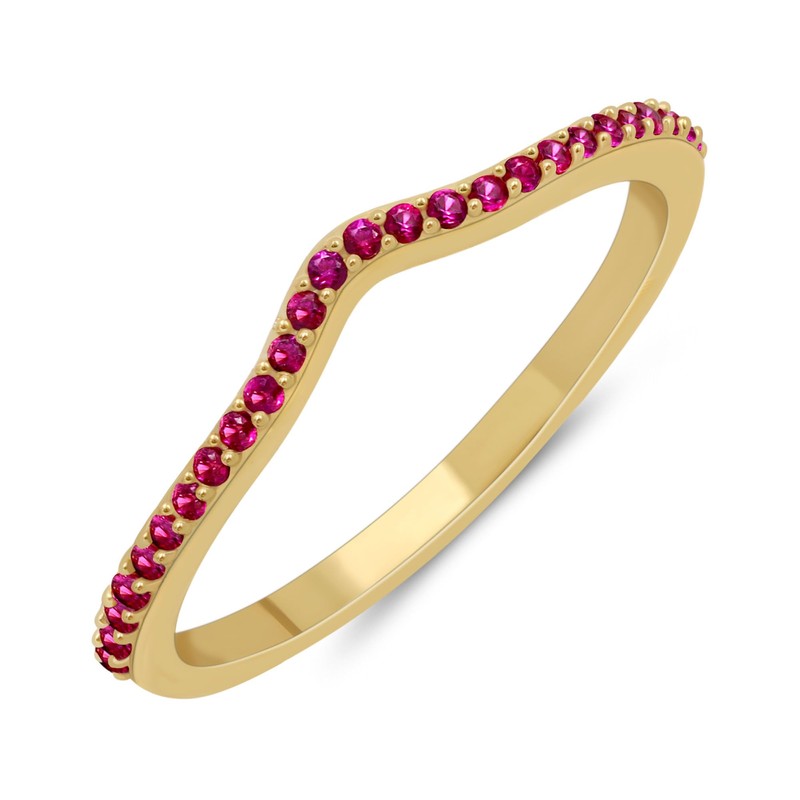 GOURIK 18K Yellow Gold Plated Created Emerald Ruby Sapphire & Simulated Diamond Stone Stackable Ring Wishbone Chevron Half-Eternity Bands For Women - Gifts for Her, Yellow Gold Lab Created Ruby, lab