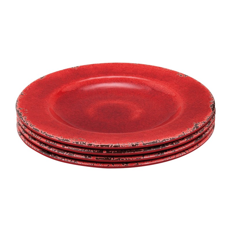 Gourmet Art 12-Piece Crackle Heavyweight and Durable Melamine Dinnerware Set, Red, Service for 4. Includes Dinner Plates, Salad Plates and Bowls. for Indoors Outdoors Use and Everyday Use.