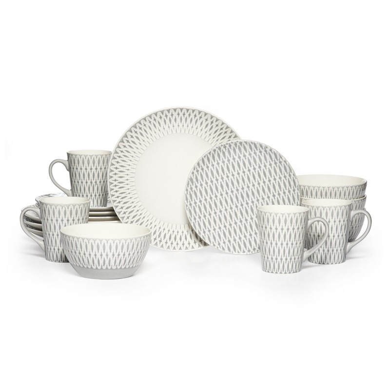 Gourmet Basics by Mikasa Aurora 16 Piece Dinnerware Set (Service For 4), Gray