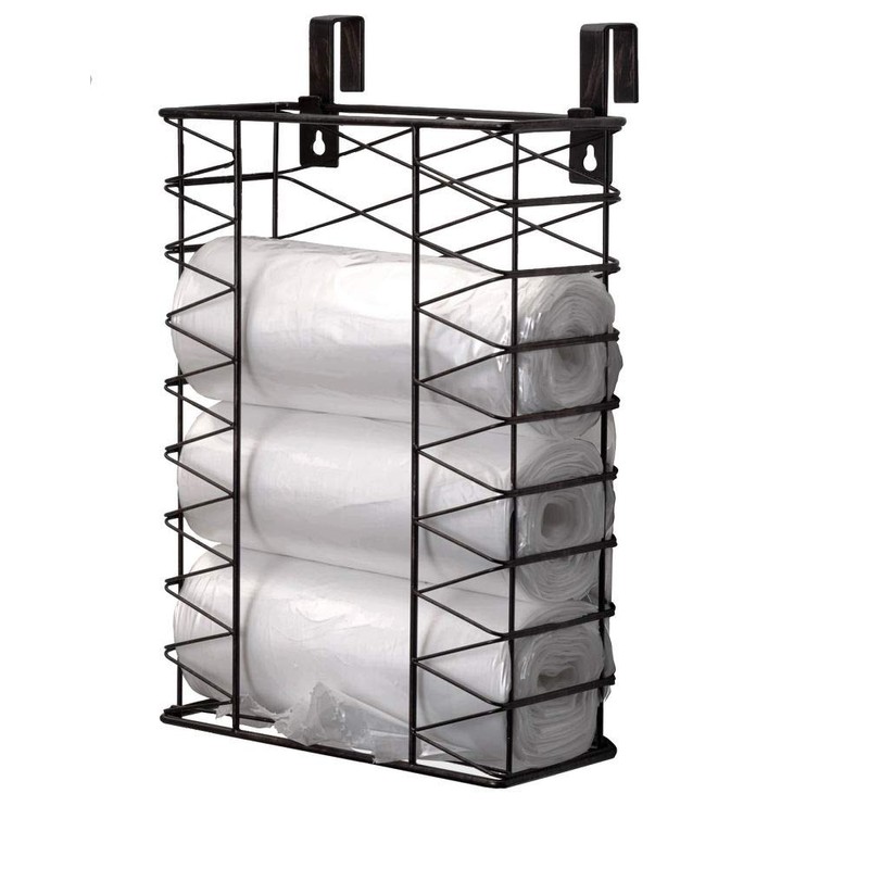 Gourmet Basics by Mikasa Garbage Bag Holder Garbage Bag Holder Basket with Removable Hooks, One size, Antique Black,5255362