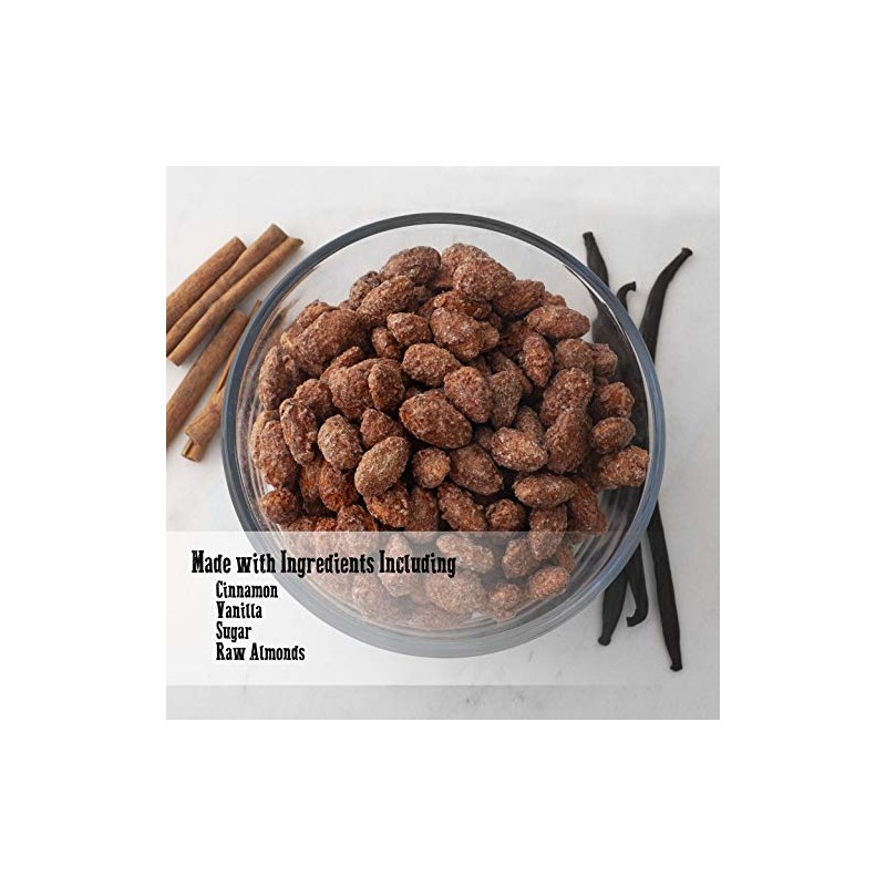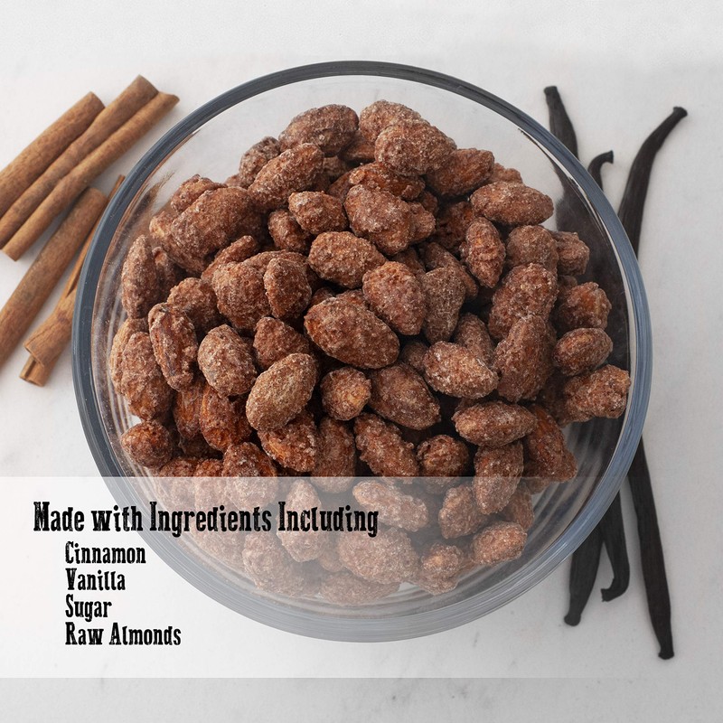 - Fresh Hand Roasted Cinnamon Almonds: From the first bite into your bag of almonds, you’ll take in the bursting flavors of cinnamon and vanilla with the crunch of fresh almonds. We fire up our German Kettles every day to produce the freshest candied almonds on Amazon.