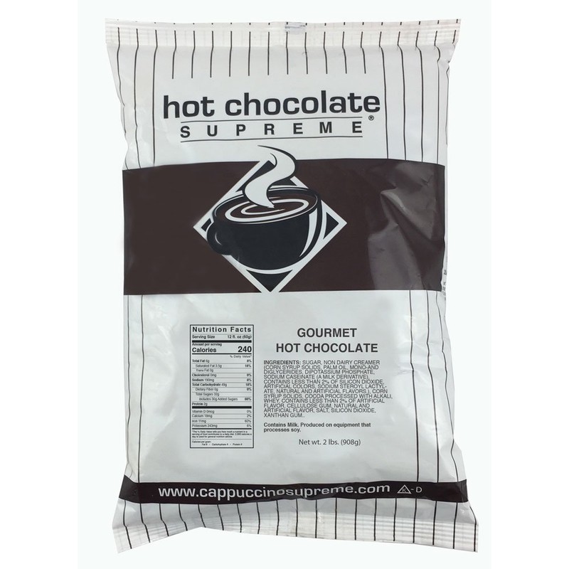 - Each 2 lb. bag of Hot Chocolate Gourmet instant hot chocolate mix makes about 22 - 8 oz servings.