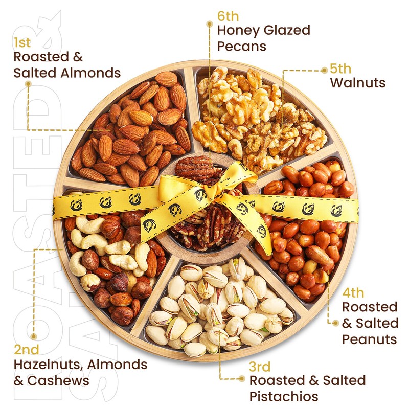 - Satisfaction Guaranteed & Easy Gifting: We stand behind the excellence of our nut trays gift basket and assure complete satisfaction. Remember to mark your purchase as a 'gift' at checkout and add a personal message to let your loved ones know who to thank for the delightful food gift box. We assure 30 day money back with your nut gift basket.