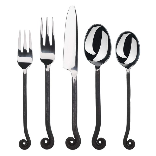 GOURMET SETTINGS At Gourmet Settings we are obsessed with design. We are constantly refining our flatware sets to ensure elite ergonomic integrity, timeless design, and a beautiful finish suitable for any occasion. All Gourmet Settings patterns have been meticulously designed, engineered and tested to be perfectly weighted and balanced, ensuring optimal performance and comfort you have to feel to believe. Our silverware sets are made with premium stainless steel and are guaranteed to last for years to come. Every time you pick up your fork we want to bring a little smile to your face! QUALITY: Unique stainless steel flatware sets focused on best design and size variety for comfort and performance. FINISH: This elegant polish and matte dinnerware set maintains it's finish perfectly without need for polishing and has been built for both strength and luster. SUITABILITY: Suited to everyday dining or casual occasions alongside any existing sets and tableware. WHAT'S INCLUDED? Salad fork (7 1/4") x 4 Dinner fork (8") x 4 Dinner knife (9") x 4 Tablespoon (7 3/4")x 4 Teaspoon (7 1/4") x 4 With its natural shaping and distinctive finishes, Treble Clef flatware has an artisanal quality that makes for an intimate, earthy feel at the table. Heat-forged for durability, the pattern features contoured handles that end in a curl reminiscent of the scroll of a violin. The mirror-finish working ends are bright and smooth, while the handles are blackened for a rustic effect. Ideal for casual entertaining, the pattern is also a great daily choice for playful spirits. With 20 pieces in all, this Treble Clef set includes four place settings, each with a salad fork, a dinner fork, a knife, a soupspoon, and a teaspoon. Crafted from 18/10 stainless steel, the set is corrosion-resistant, safe in the dishwasher, and designed to keep its finish without polishing. Treble Clef serving pieces are also available, and Gourmet Settings covers the pattern with a 50-year warranty. --Emily BedardWhat's in the Box 4 place settings. Each place setting consists of: dinner fork; salad fork; soupspoon; knife; teaspoon. 20 pieces total.