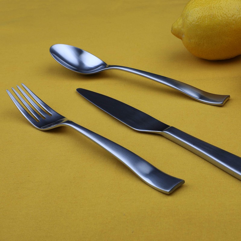 - QUALITY DESIGN: Sleek stainless steel flatware set in matte finish with ergonomic design and heavy feel.