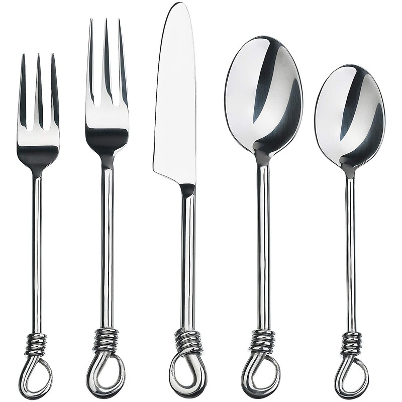 - MODERN DESIGN: Mirror polish finish and unique handle ends provide this elegant flatware set with a real personality that is not only beautiful but heavy weight and comfortable.