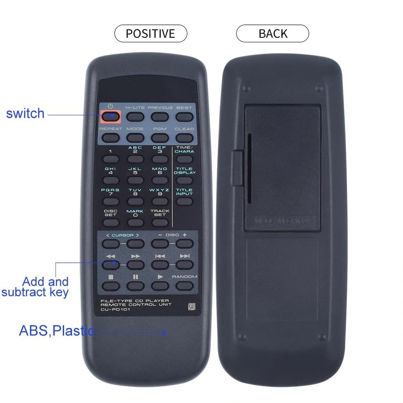 - ✔✔【Durability/Comfort】CU-PD101 applicable to Pioneer CD player replacement remote control made of high quality ABS material is durable, hard to break and has excellent impact resistance and durability. The surface is glazed, smooth and feels comfortable and is easy to grip. Silicone buttons are soft and stick to your fingers and have excellent durability and stain resistance