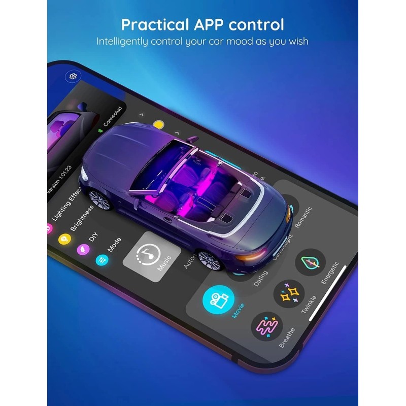 - Smart App Control: Manage the colors and brightness of car lights or choose music mode by one simple tap with Govee Home app. Enjoy a comfortable and vibrant driving experience with convenient control.