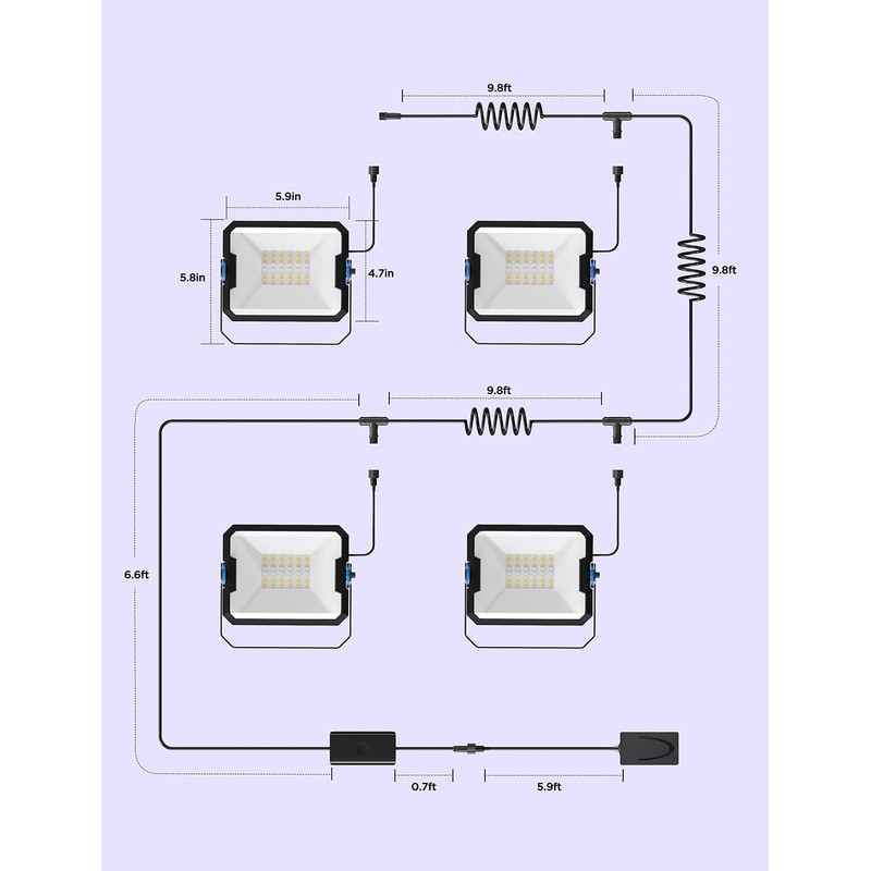 - Easy Installation: Mount on walls or place on the ground to highlight paths, gardens, or architecture. Please note only when all LED flood lights are attached on the control cable can this device function properly.