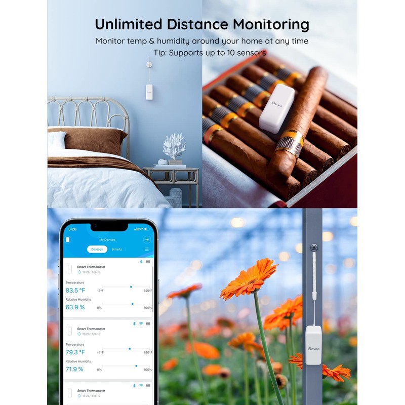 - Smart Alert Notifications: Determine preset ranges for your temperature and humidity on the Govee Home App. When the presets are out of range, you'll recieve an immediate notification on your phone.