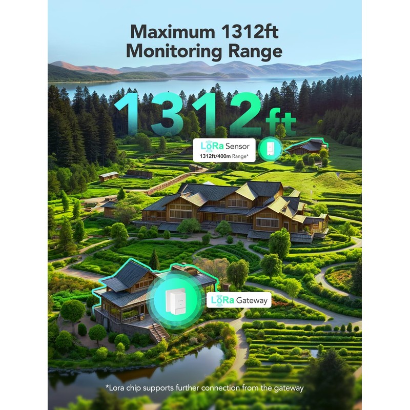 - Longer Monitoring Range: Utilizing a LoRa module, this device has an impressive 400m/1312ft communication distance, making it ideal for covering multiple scenarios despite its compact size.
