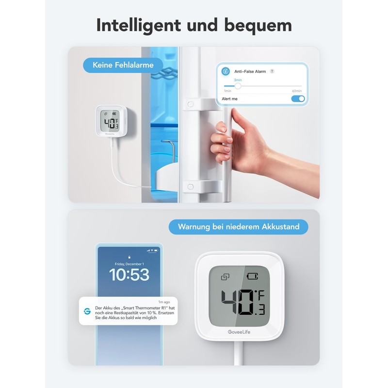 - INSTANT ALARMS 24/7 - Set preset temperature ranges, and the WiFi refrigerator thermometer notifies you via the app when the temperature rises or falls outside the range. A stable connection is used for the alarm of the freezer temperature thermometer, so that the safety of food and equipment is always guaranteed. (Only 2.4 GHz WiFi)