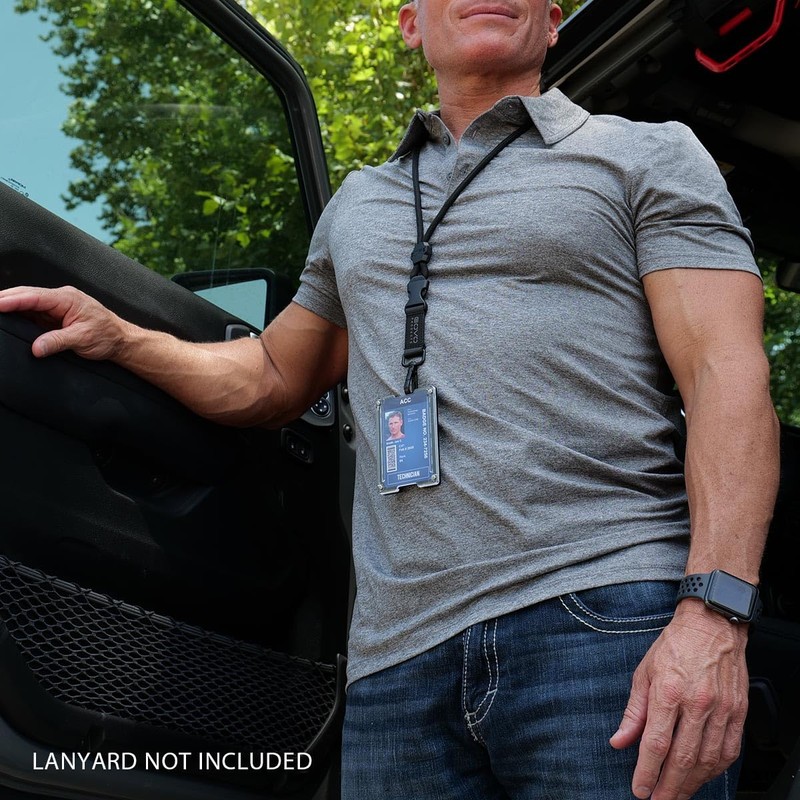 • PATENTED CLIP: The first and only badge holder with a metal clip allow you to carry your ID on your belt, pocket, key chain, backpack or a lanyard. The opening on top of the clip is designed for connecting to lanyard or carabiner. The clip is made from manganese steel making it strong and durable.