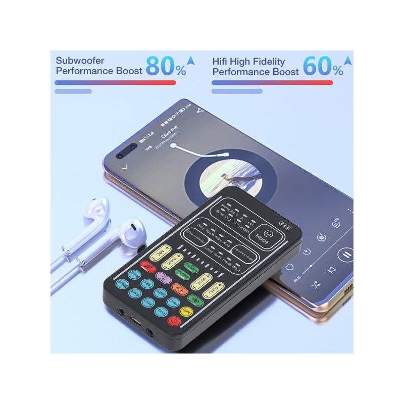 • COMPATIBLE: Universal mini sound card, suitable for mobile phones, computers, plug and play. can be used indoors and outdoors, very suitable for live voice change, live broadcast, recording, broadcasting and chatting, etc.