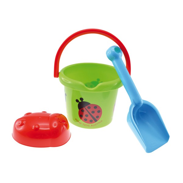 - The set consists of a bucket with ladybird motif, a sand mould and a shovel, so nothing stands in the way of fun in the sandpit or on the beach.