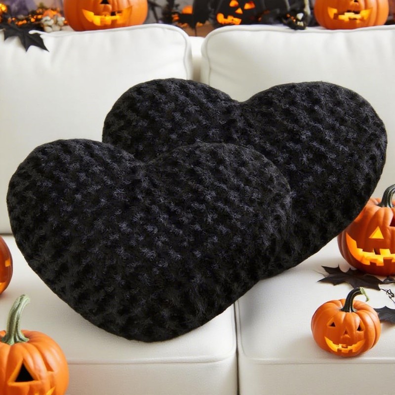 Gowwye 2 Pcs Black Heart Pillow,Cute Heart Shaped Pillow Plush Heart Throw Pillow Set for Bed Livingroom Sofa Home Decor Girls Women Valentine (mini-12.9"x9.8")