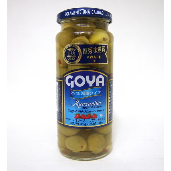 GOYA Green Olive with Paprika, Reduced Salt Solids, 6.7 oz (191 g)