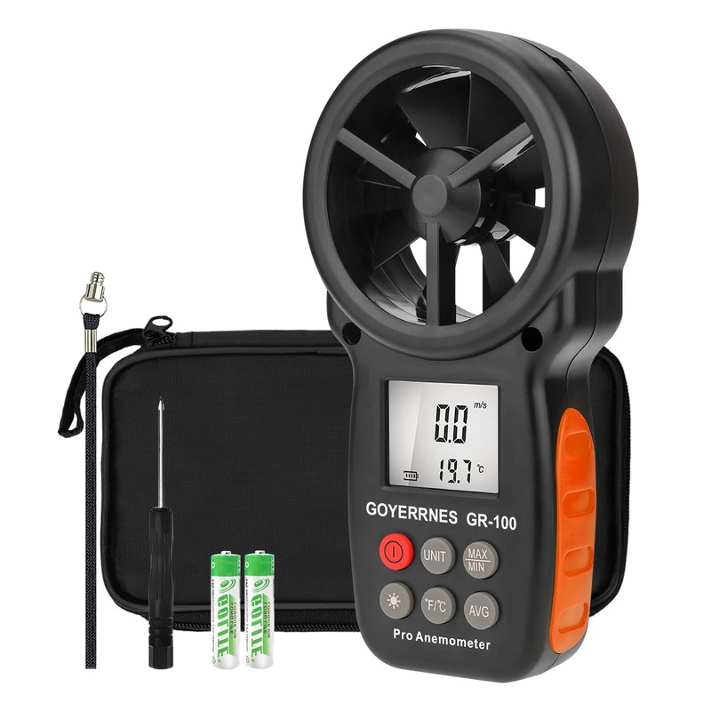 GOYERRNES Handheld Anemometer, Digital Wind Speed CFM Meter Gauge, Air Flow Velocity Tester for HVAC Shooting Drone, Wind Chill, Wind Temperature GR-100