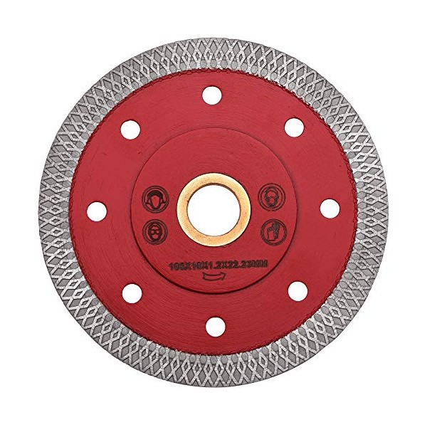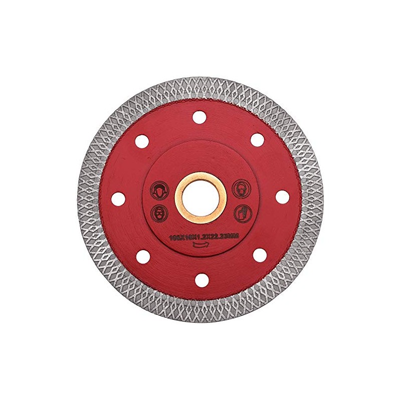 - 【Size & Material】: This tile blade is made of quality metal alloy with diamond grains, which is durable and high strength. Available in various sizes to choose, the size is: 105 x 10 x 1.2 x 22.23mm, Thickness: 1.2mm, Outer Diameter:105mm /4 inch, 7/8” arbor, Diamond concrete saw blade has a tough body with 1.22mm thickness.