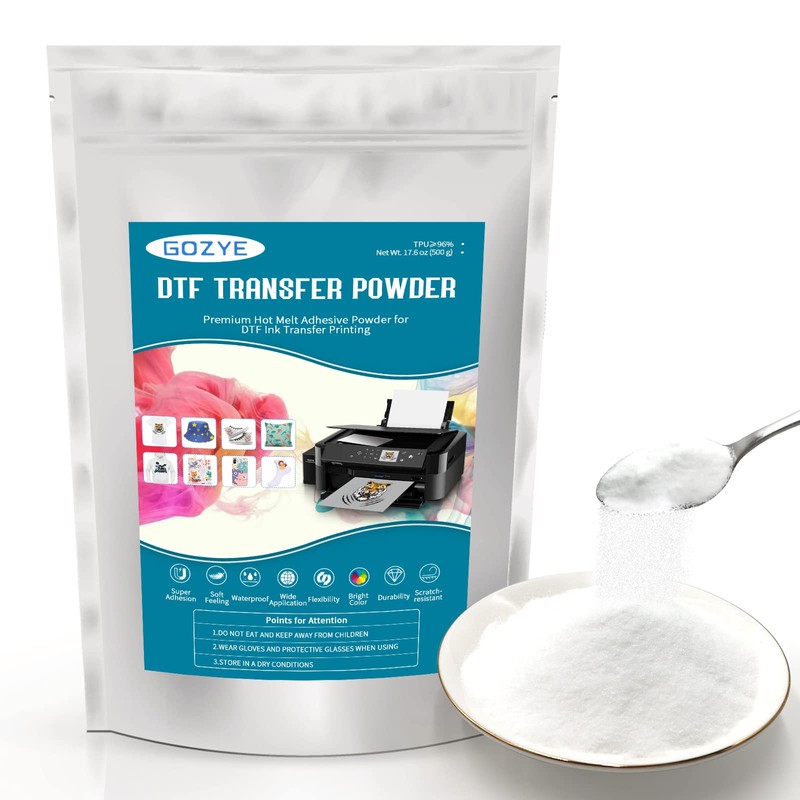 - 【High Durability】DTF hot melt adhesive powder does not need pretreatment. GOZYE DTF Powder will not clog your automatic shaker and has excellent adhesion, water resistance and flexibility. Scratch-resistant,Crack-resistant not easy to fall off.