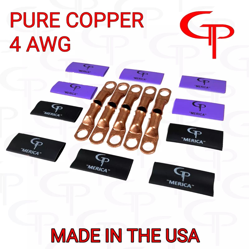 MADE IN THE USA Copper lugs and heat shrinks. 4 AWG pure copper UL Listed.